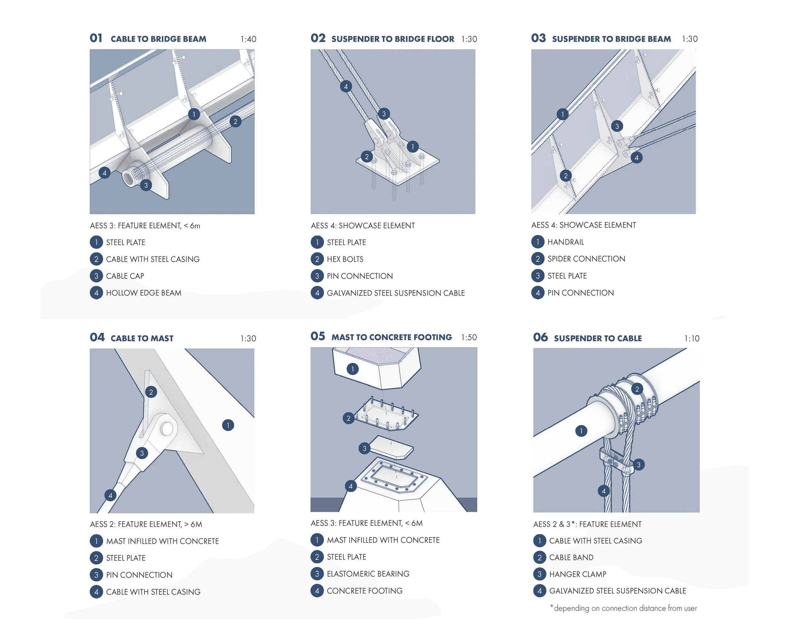 The Knot-ical Bridge connects Halifax's South End with Armdale, saving residents commute time, expanding the city's green network and reaffirming public waterfront access. The bridge draws inspiration from Halifax's sailing traditions, featuring a design reminiscent of billowing boat sails. Three masts supporting different areas of the bridge are strategically arranged to create various experiences and viewpoints. For example, an observation deck and seating allow for various activities and groups of people to meet and enjoy the Northwest Arm. In addition, a ramp from the lower elevation of Sir Sandford Fleming Park provides quick access to the main bridge and also offers a journey that connects users with the historic site, different views of the city and the Atlantic Ocean. Designed to celebrate architecturally exposed structural steel, great emphasis was placed on details and connections. Ultimately, this innovative structure not only serves as a necessary connection between points in Halifax but also enriches the public realm, encouraging walking and cycling and inviting people to enjoy the city's scenery and heritage from a new perspective.